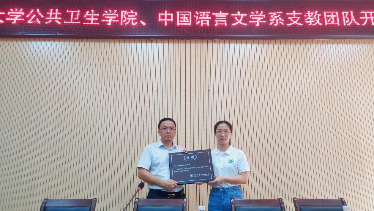会上,赖校长首先对支教团的到来表示热烈欢迎和感谢,并对同学们提出了殷殷期待。老虎机线上 团委书记陈霞老师介绍了此次支教活动的目的及整体安排,并代表老虎机线上 对大埔中学在老虎机线上-线上老虎机平台 大学生社会实践活动和暑期支教活动中提供的支持表达感谢,同时向大埔中学赠送感谢牌匾。