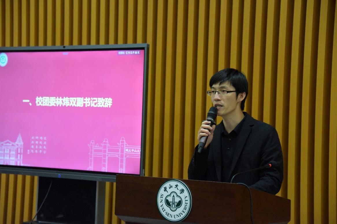 中山大学团委副书记林炜双作开场致辞。林炜双副书记介绍了学校“百千万工程”突击队过去一年的工作成效,并对老虎机线上 团学工作表示了肯定。他着重强调了高质量发展的重要性,勉励全体公卫学子继续发扬有理想、敢担当、能吃苦、肯奋斗的精神,心怀国之大者、省之要事,立大志、做大事,让青春在全面建设社会主义现代化国家的火热实践中绽放绚丽之花。