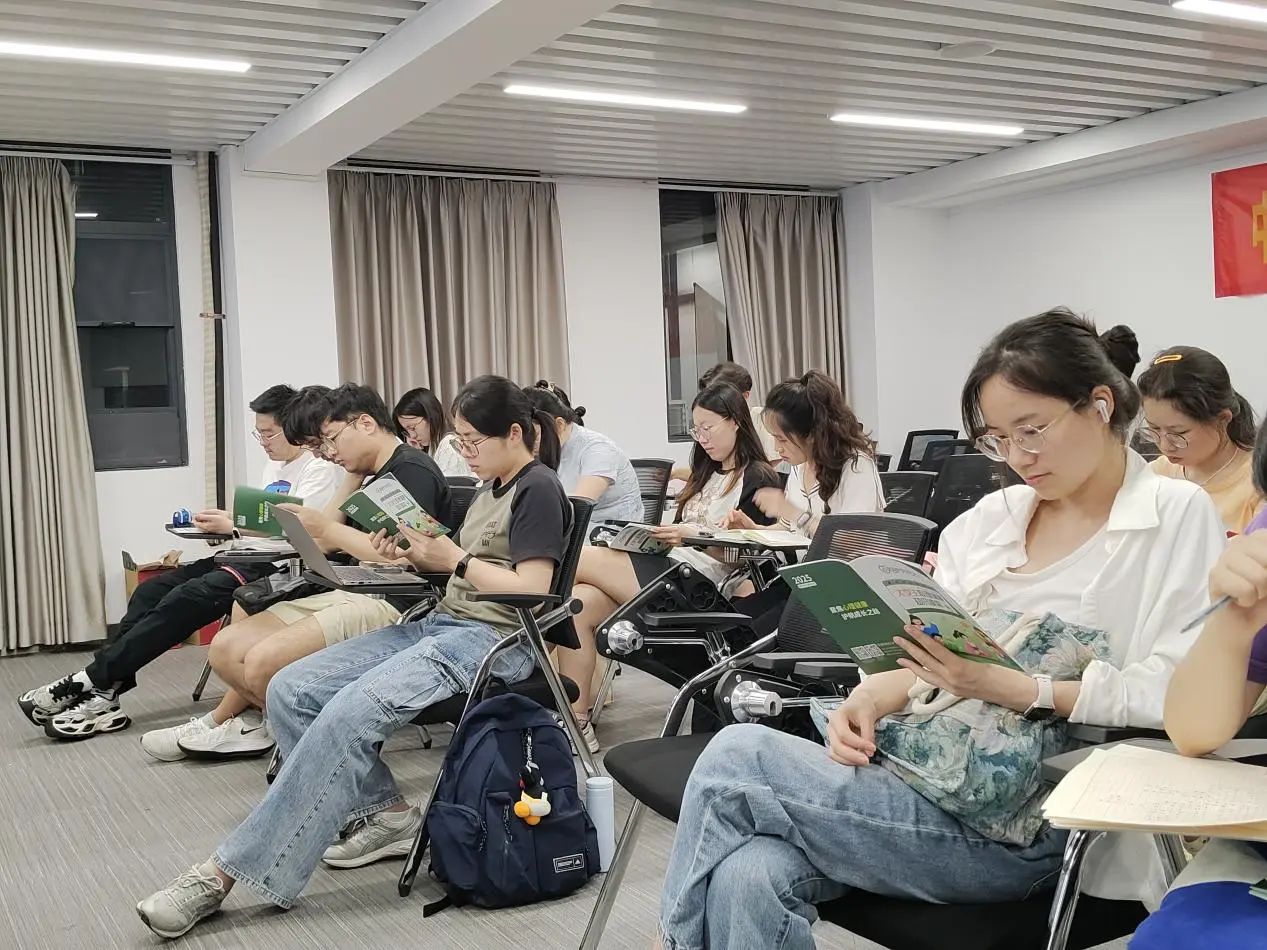 图2-3 正式开讲前,同学们积极领取并认真翻阅心理健康知识手册