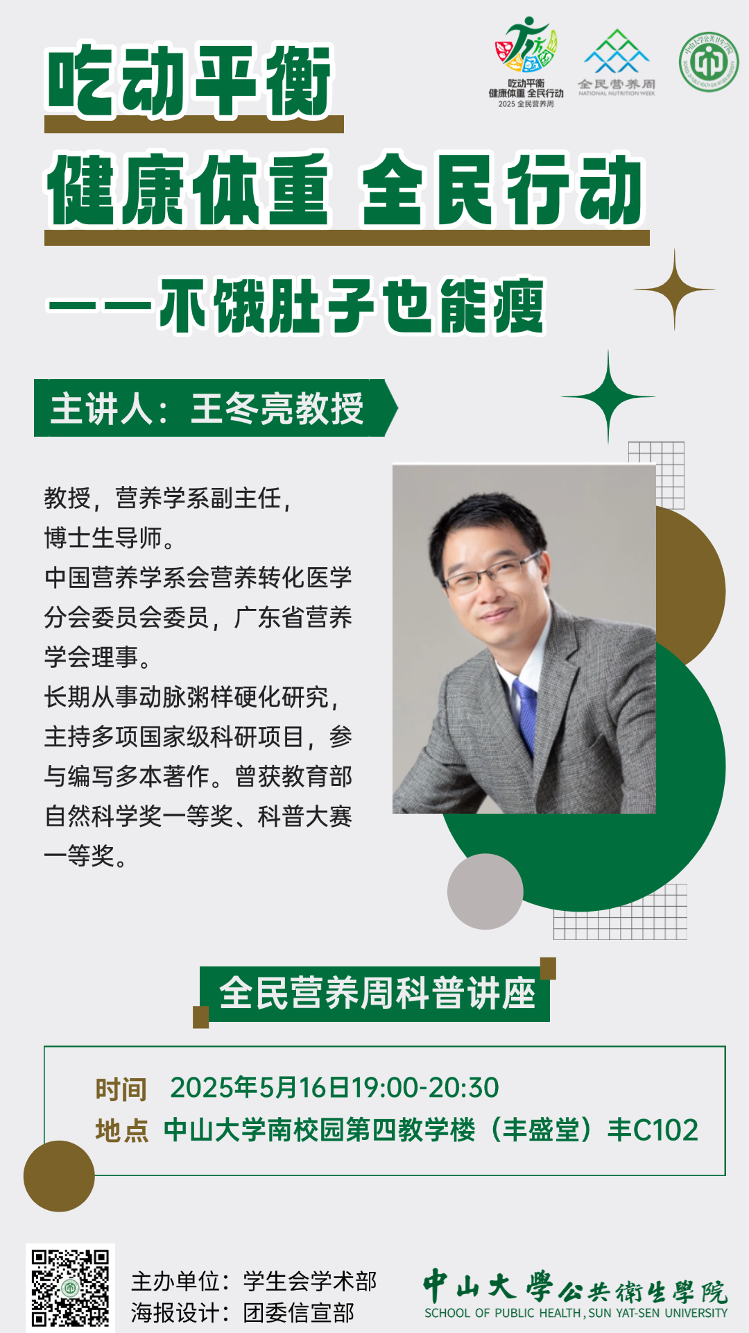 在即将到来的营养周活动期间,老虎机线上 将依托中山大学营养健康科普基地,精心策划一系列精彩纷呈的活动,诚邀您共赴五月之约,踏上科学饮食与运动相结合的健康探索之旅,一同揭开保持健康体重的神秘面纱!