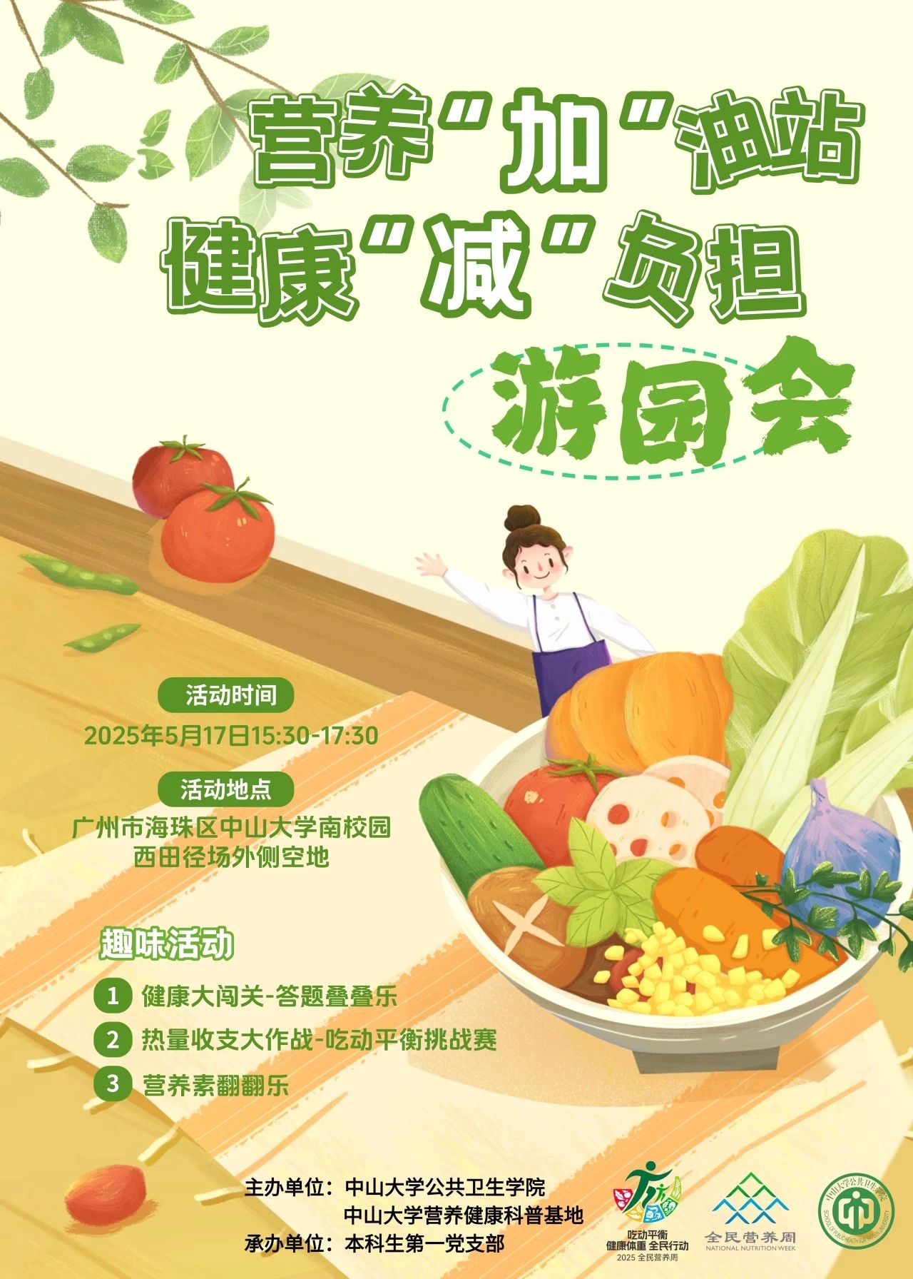 本科生第二党支部将联合珠光街社区党群服务中心,通过讲座和游园会形式进行健康宣教,帮助大家摆脱营养误区,提高对营养的认识。现场将安排营养讲座、知识问答和运动竞赛等互动游戏,让居民在轻松愉快的环境中学习健康知识,鼓励大家将健康的生活方式融入日常生活中。