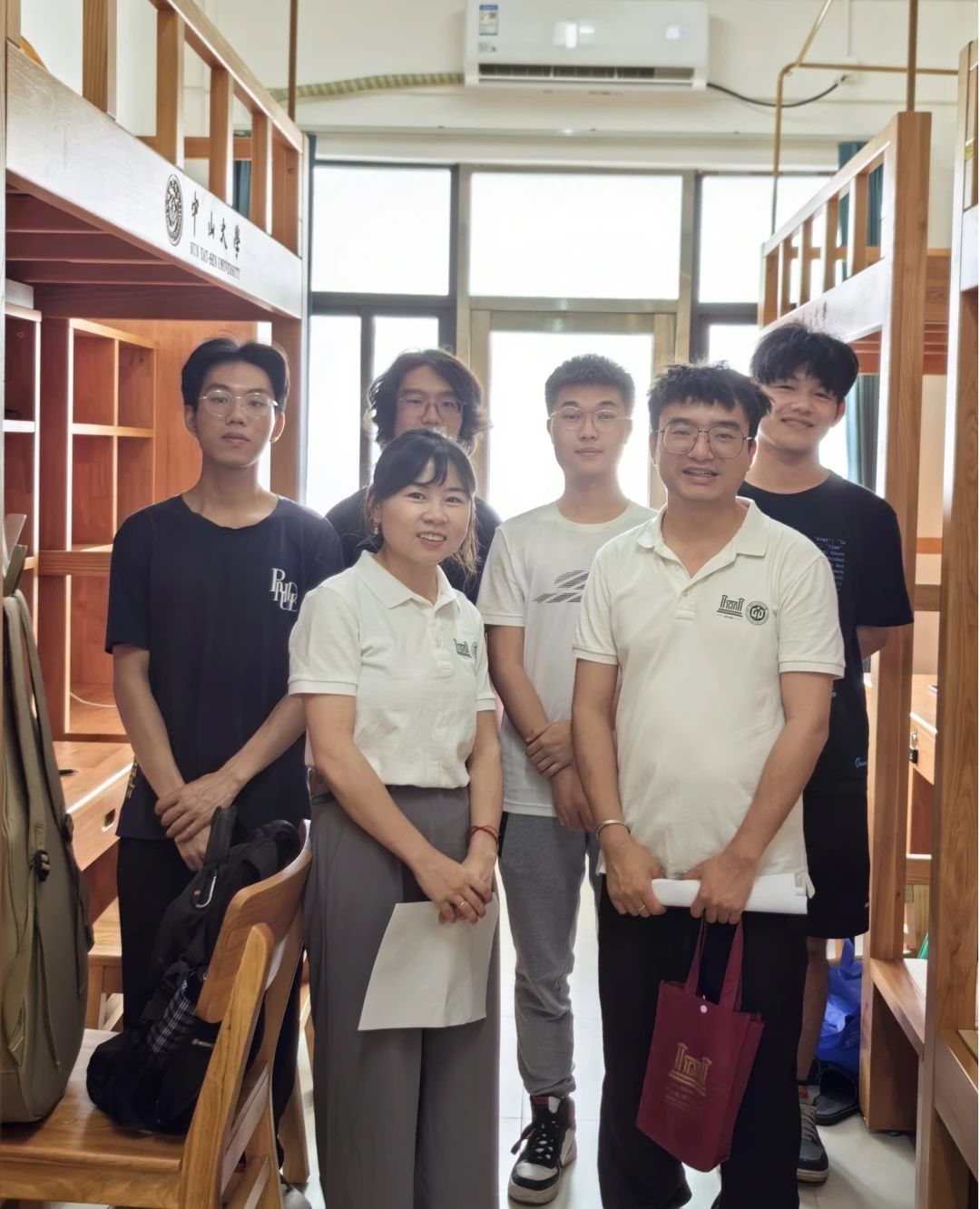 搬迁完成后,王燕芳老师、蓝丹红老师、李永强老师、林晓老师、郭蓝老师,以及杨秀芝、张芷蕙,逐间走访宿舍。老师们与同学们亲切交谈,询问搬迁感受,倾听大家的困惑与建议,对同学们在搬迁过程中遇到的问题,及时协调解决。一句句暖心的问候,一声声关切的叮嘱,让初入新校园的同学们,真切感受到了家一般的温暖。