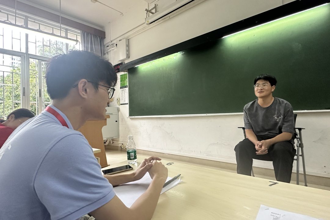 2025级新生班临时班委面试在第一教学楼1206教室顺利举行。本次面试旨在选拔出一批有责任心、有组织能力的骨干,在开学初期开展班级工作,帮助同学们更快适应大学生活。