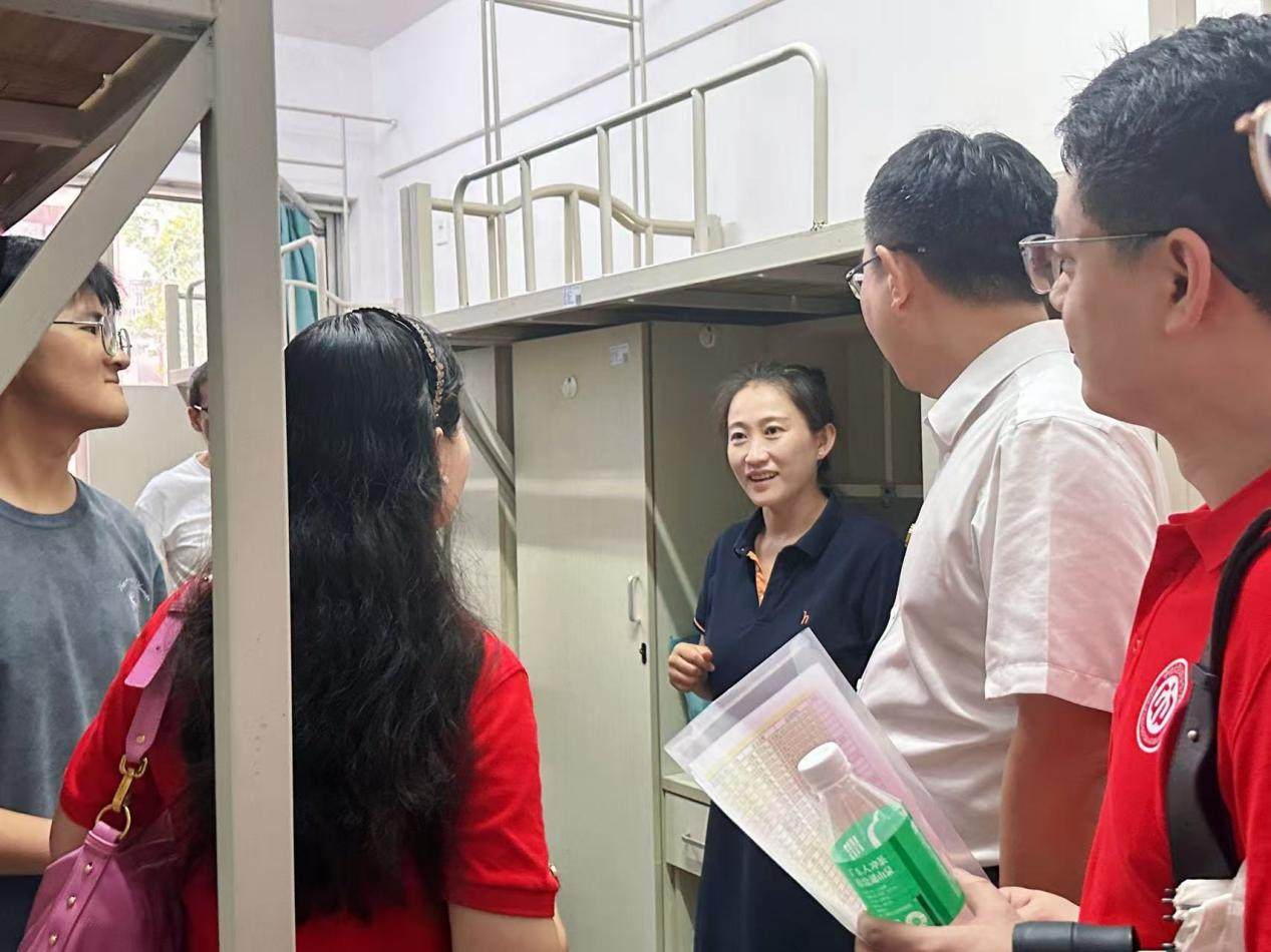 院长夏敏教授、王燕芳副书记、班主任程治远副教授、党政专职辅导员彭雪婷老师和李永强老师,与学长团成员们共同前往学生宿舍,走访交流。老师们亲切询问同学们的入住情况,关心学生的住宿条件和报到体验,耐心解答生活学习问题。“萌新”们离家又“归家”,公卫这个大家庭,将是他们展翅高飞前新的港湾。