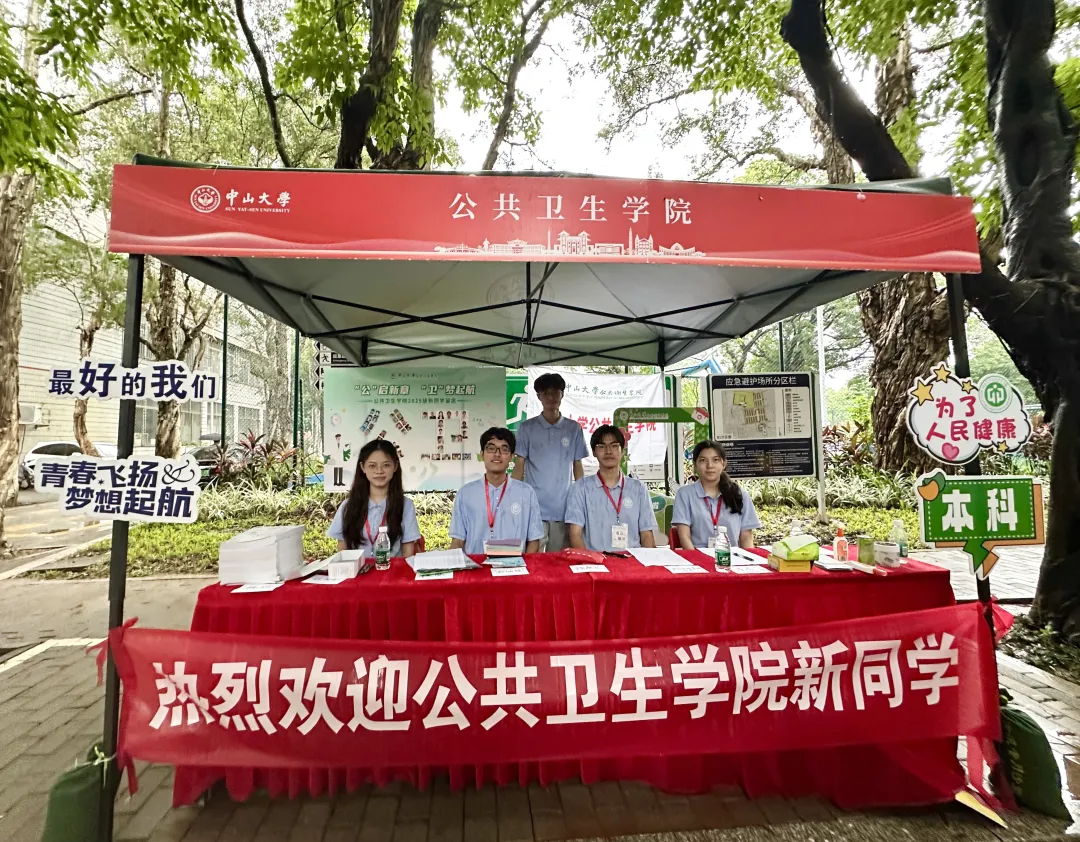 8月19日,迎新大戏正式开锣!在迎新站,新生们通过"扫脸报到"完成注册,提交档案资料后领取校园卡等入学物资,最后在公卫迎新墙贴上院徽,写下签名,定格与中大的初遇瞬间~