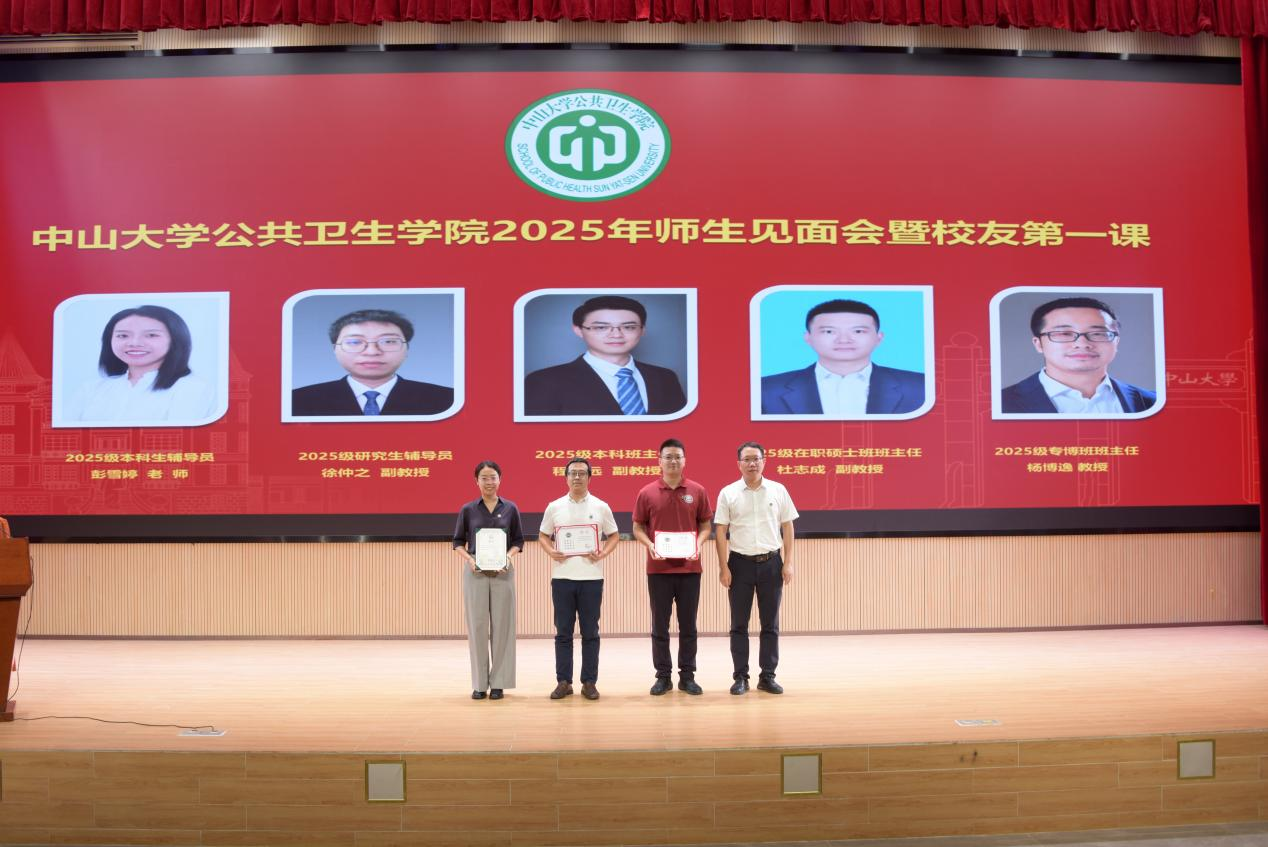 夏敏院长为2025级本科生和研究生辅导员、2025级本科生班主任、专硕专博在职班班主任颁发聘书,期待他们为学生指点迷津,助力学生成长,成为优秀的引路人。最后,全体起立奏唱中山大学校歌。