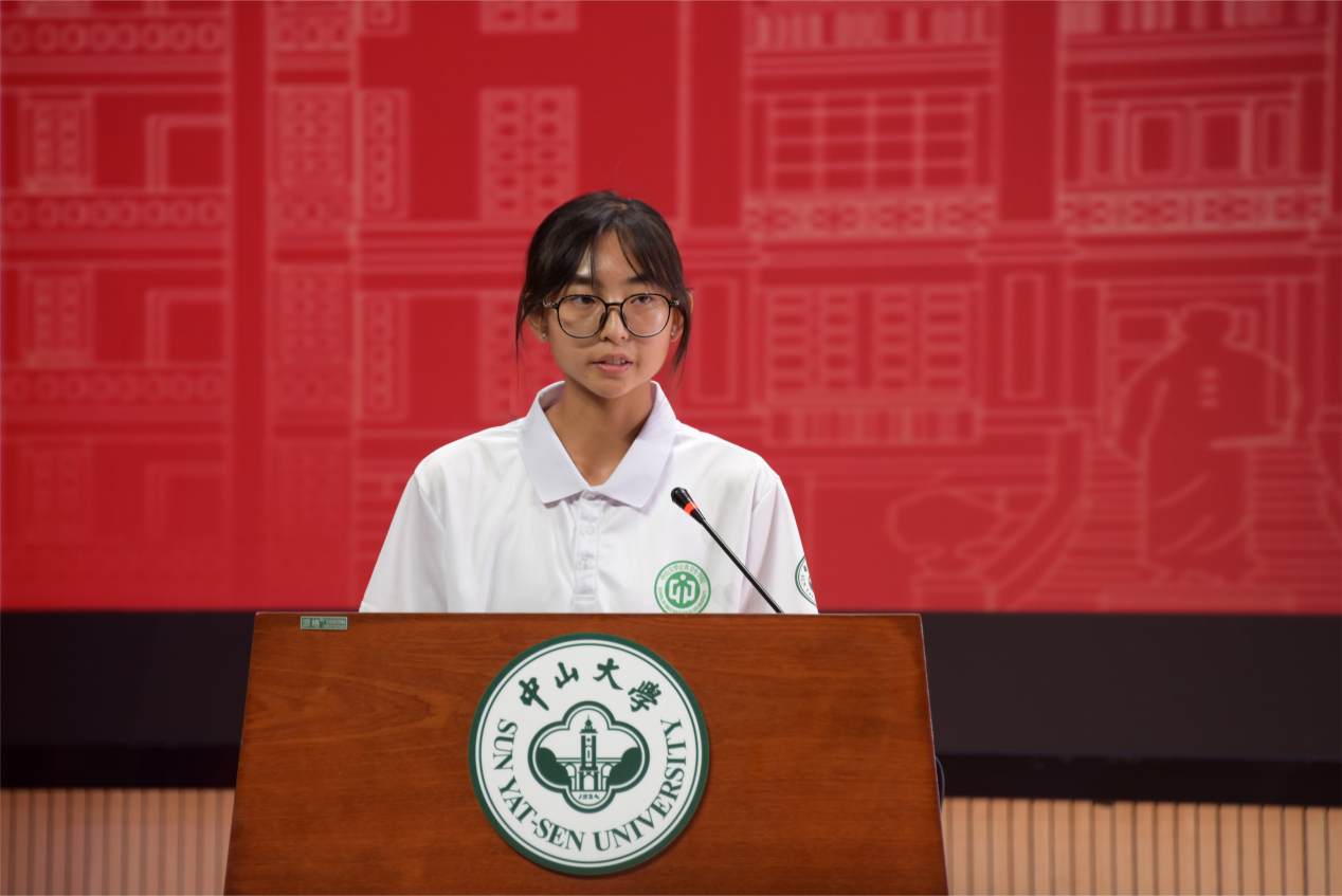 2025级本科生马钰涵同学作为新生代表发言。她结合自己的亲身经历讲述了进入中大的切身感受,并由此产生对预防医学专业的热爱。希望同学们都能爱上预防医学,永葆热情,砥砺奋进,坚定理想信念,不负韶华,成为守护人类健康的健康卫士。