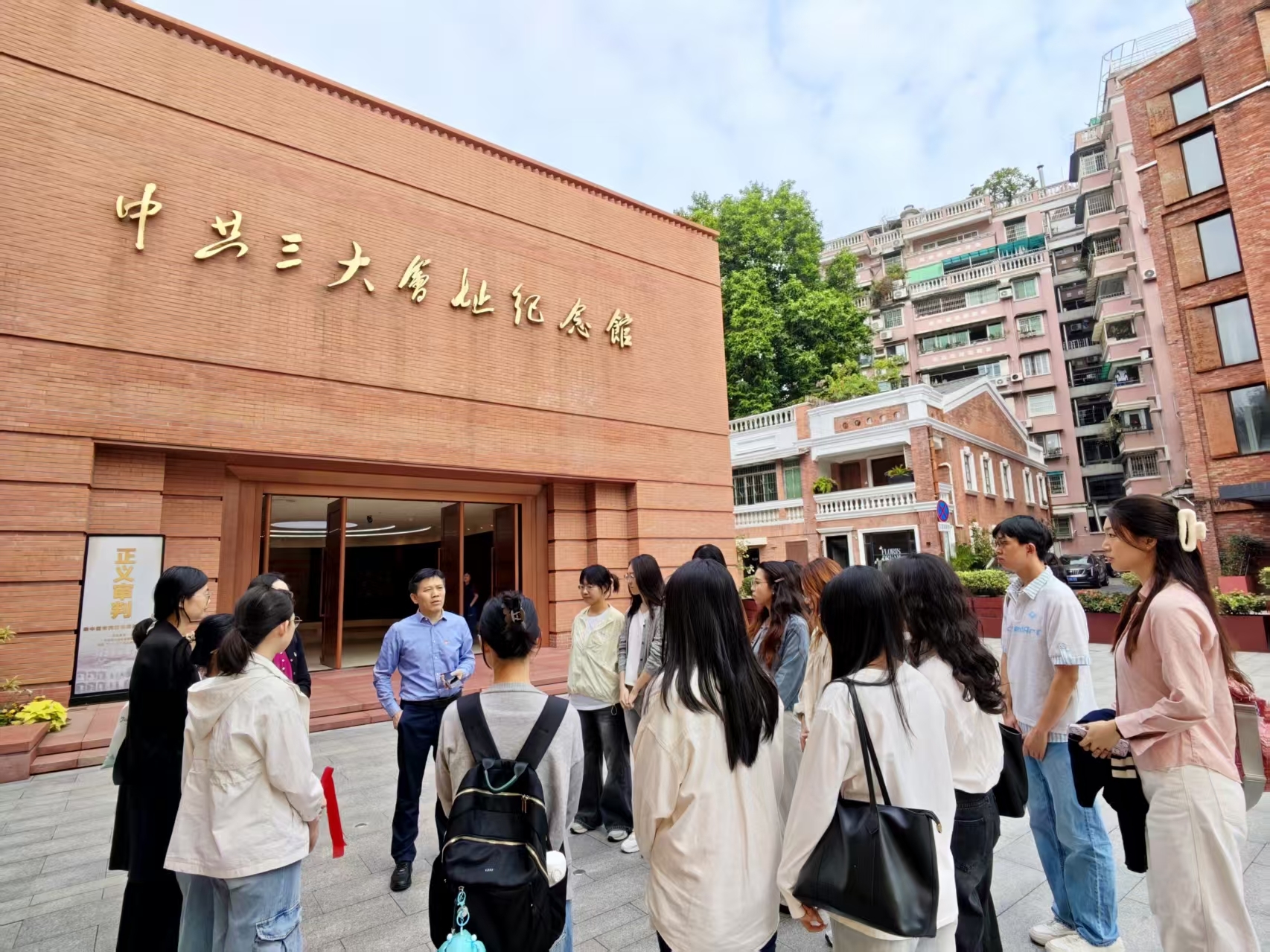 卫管系党员在纪念馆门前合影