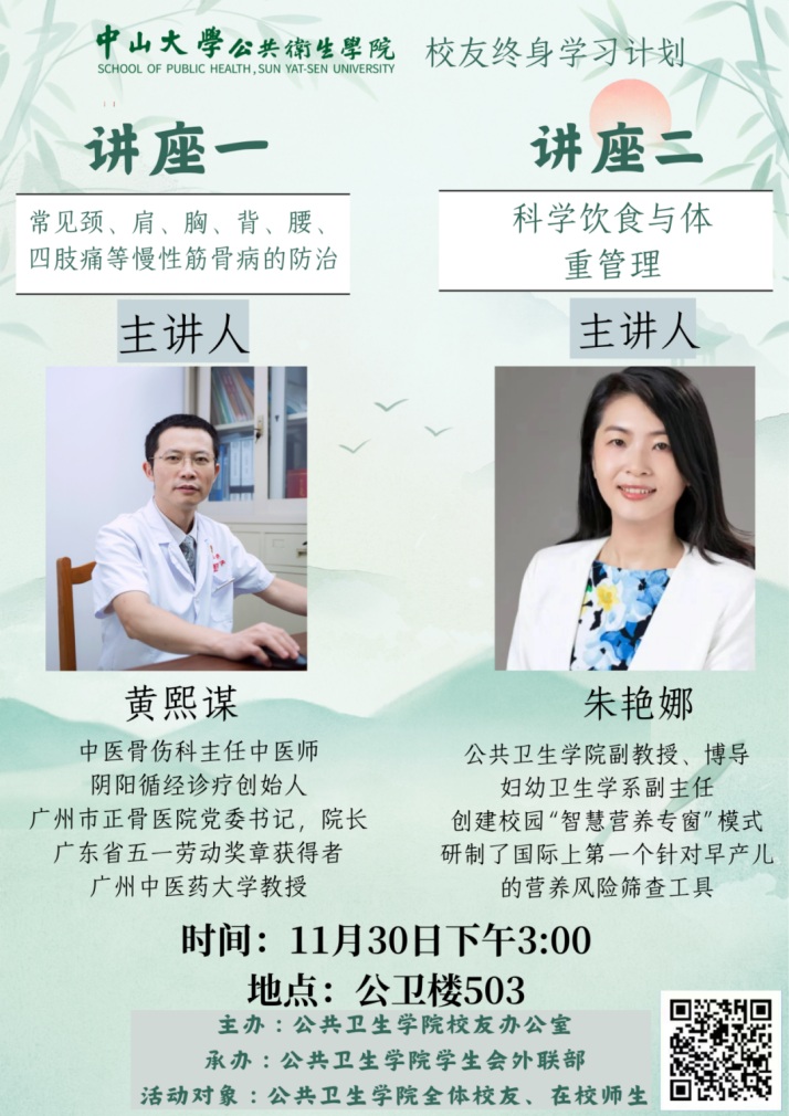 校友会联合主办的“慢病防治与科学饮食”主题讲座在中山大学广州校区北校园顺利举行。本次讲座由广州市正骨医院党委书记、院长黄熙谋主任医师,老虎机线上