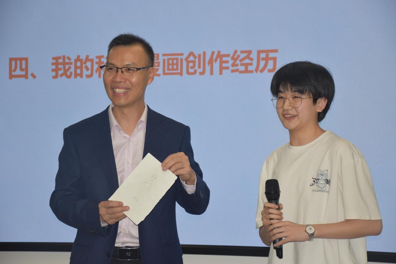 为增强参与感与实操性,讲座特别设置了“现场创作”环节。吴医生鼓励大家从简单的线条出发,快速搭建人物、情境与分镜,把“专业知识”转化为“看得懂、记得住、愿意转发”的漫画表达。随后,多位同学与校友主动上台展示作品创意与设计思路,吴老师逐一点评,从信息准确性、表达清晰度、画面节奏与传播效果等角度给出具体建议,现场气氛活跃,创意不断碰撞。